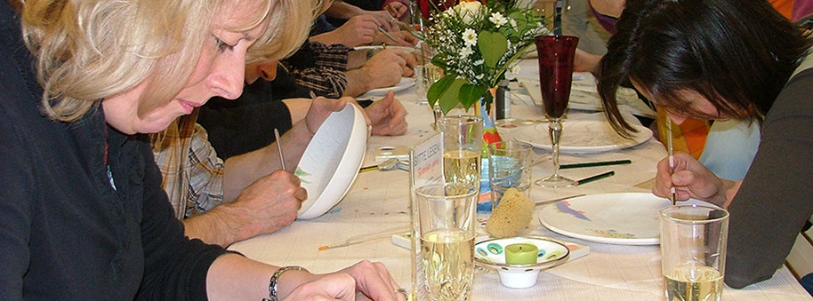 Das Anmalen macht viel Spass und bietet zusätzlich ein gemeinschaftliches, kreatives Erlebnis. Selbstverständlich bekommen Ihre Gäste eine ausführliche Anleitung zum Bemalen der Keramik.